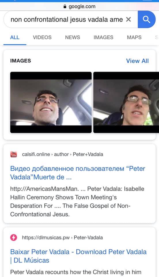 In the below search results, I searched “non confrontational Jesus vadala americasmansman.” The only results that came up were two foreign fan sites whose foreign languages helped me slip through Google’s Orwellian, anti-Christian, anti-American, pro-sodomy filters.