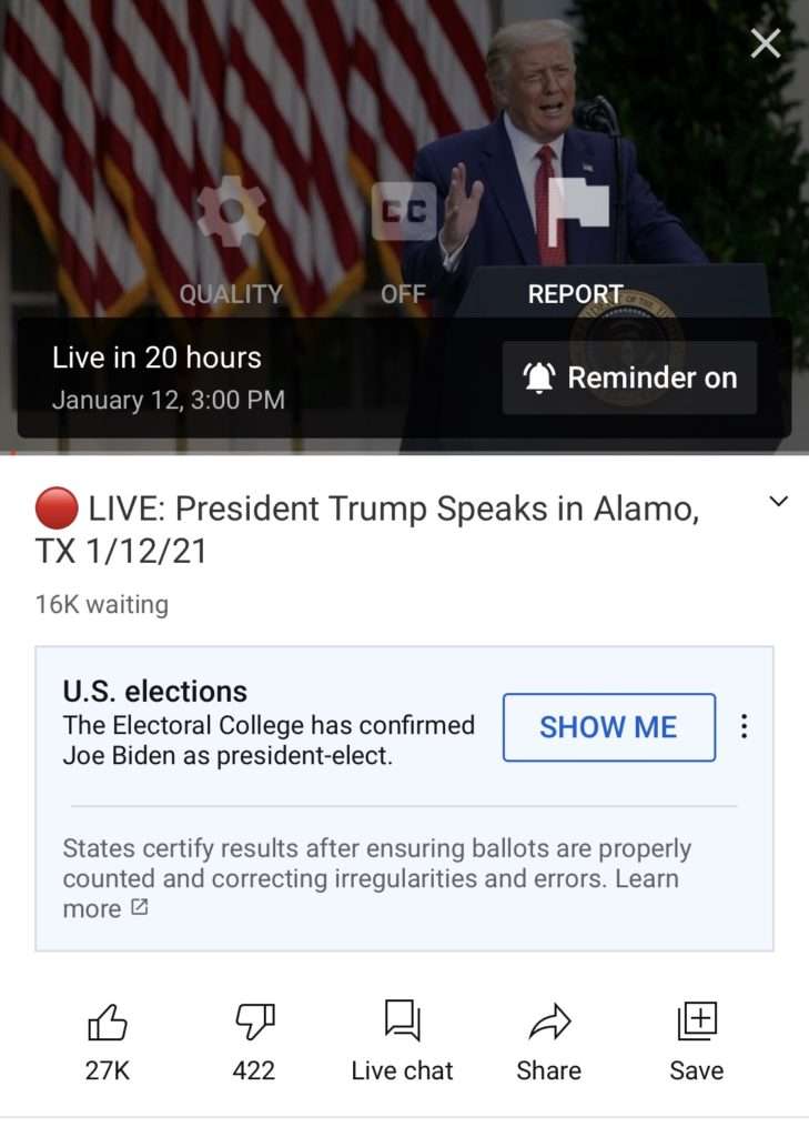 Google is also inserting false news into this video in text form.